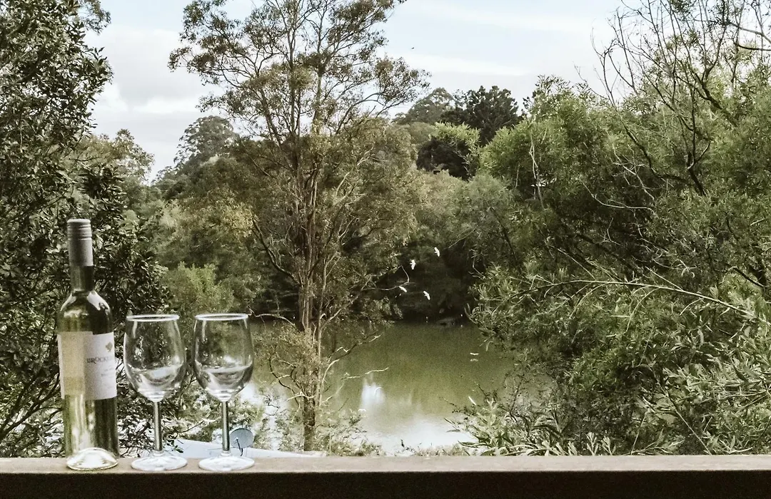 Die 2-Zimmer- Kookaburra Cottage At On Burgum Pond Maleny bietet einen Blick auf die Seen und liegt in unmittelbarer Nähe von der Sunshine Coast. Diese Villa verfügt über ein privater Parkplatz und eine Terrasse mit Aussicht auf den See.
